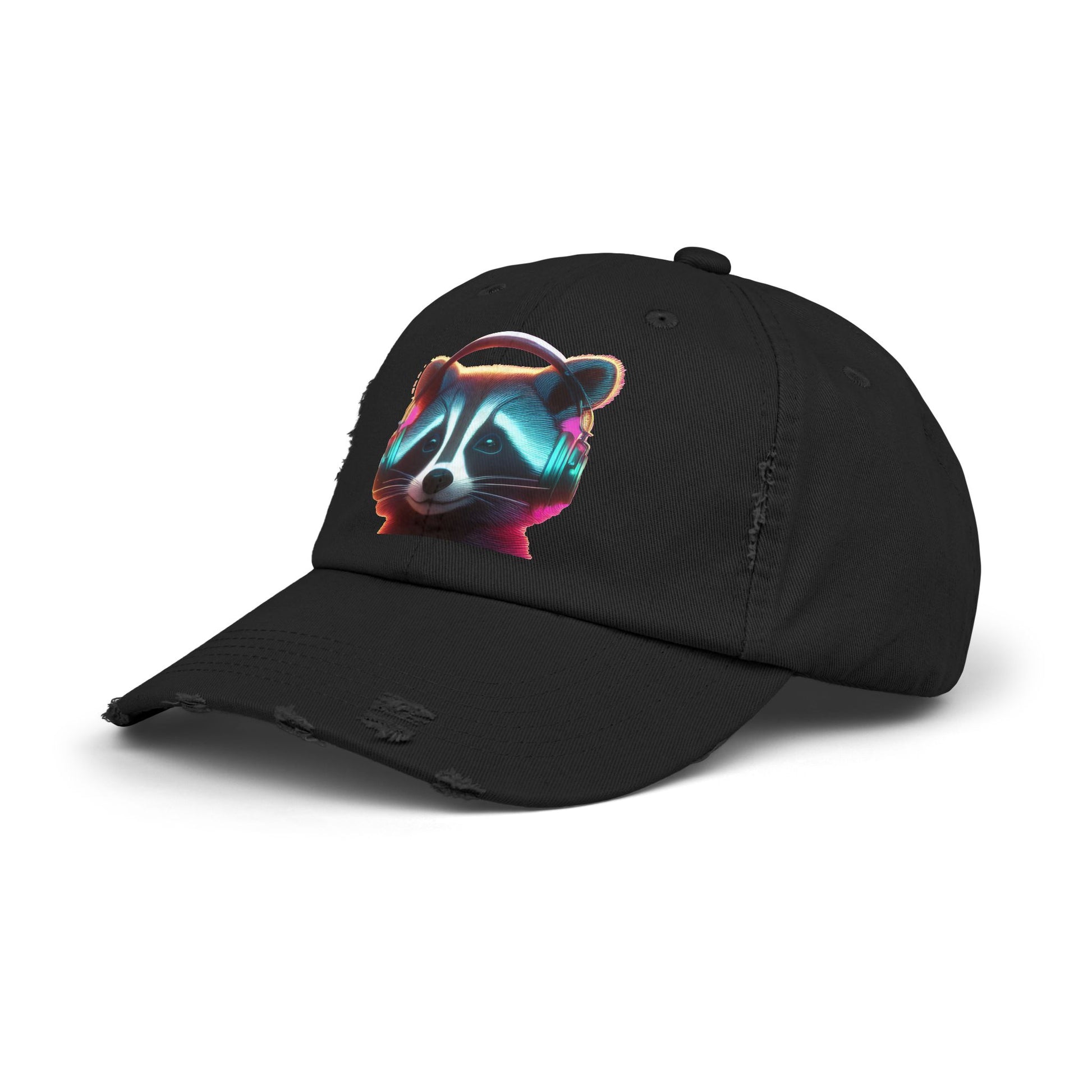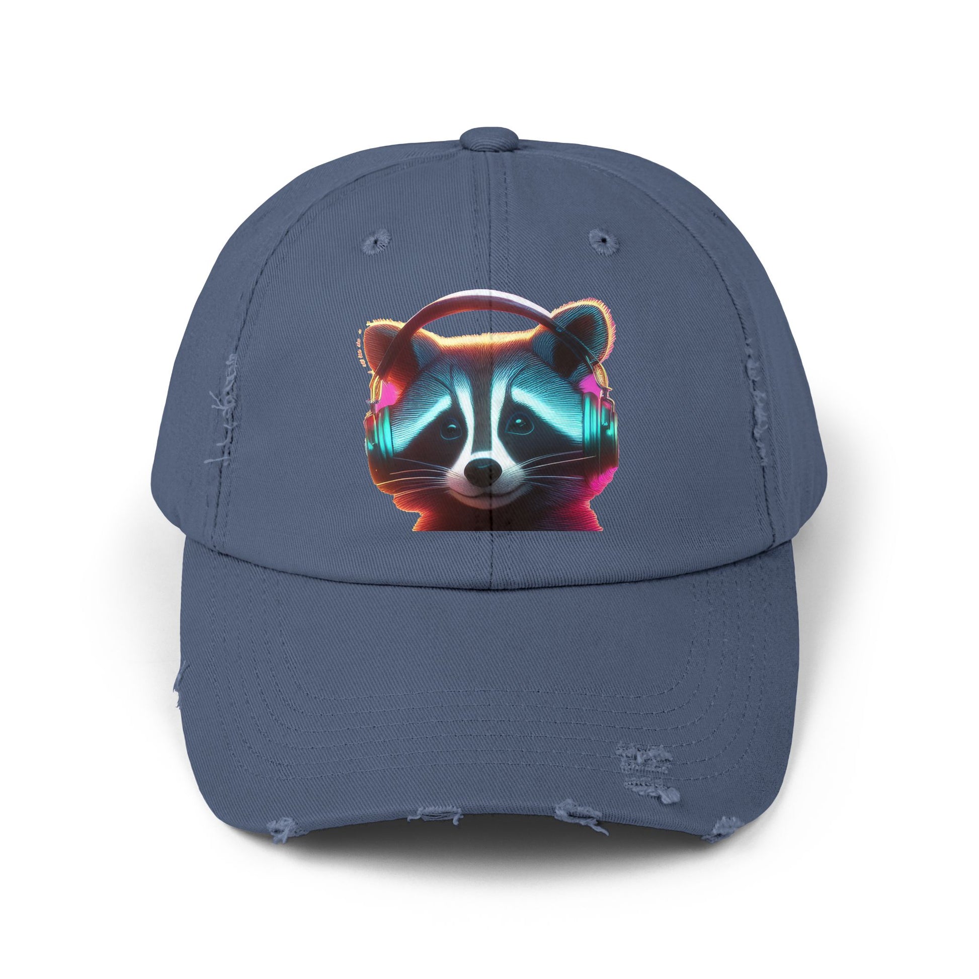 Cool Raccoon Distressed Cap | Trendy Unisex Snapback | Fun Outing Gear | Gift for Animal Lovers, Music Fans, Casual Wear