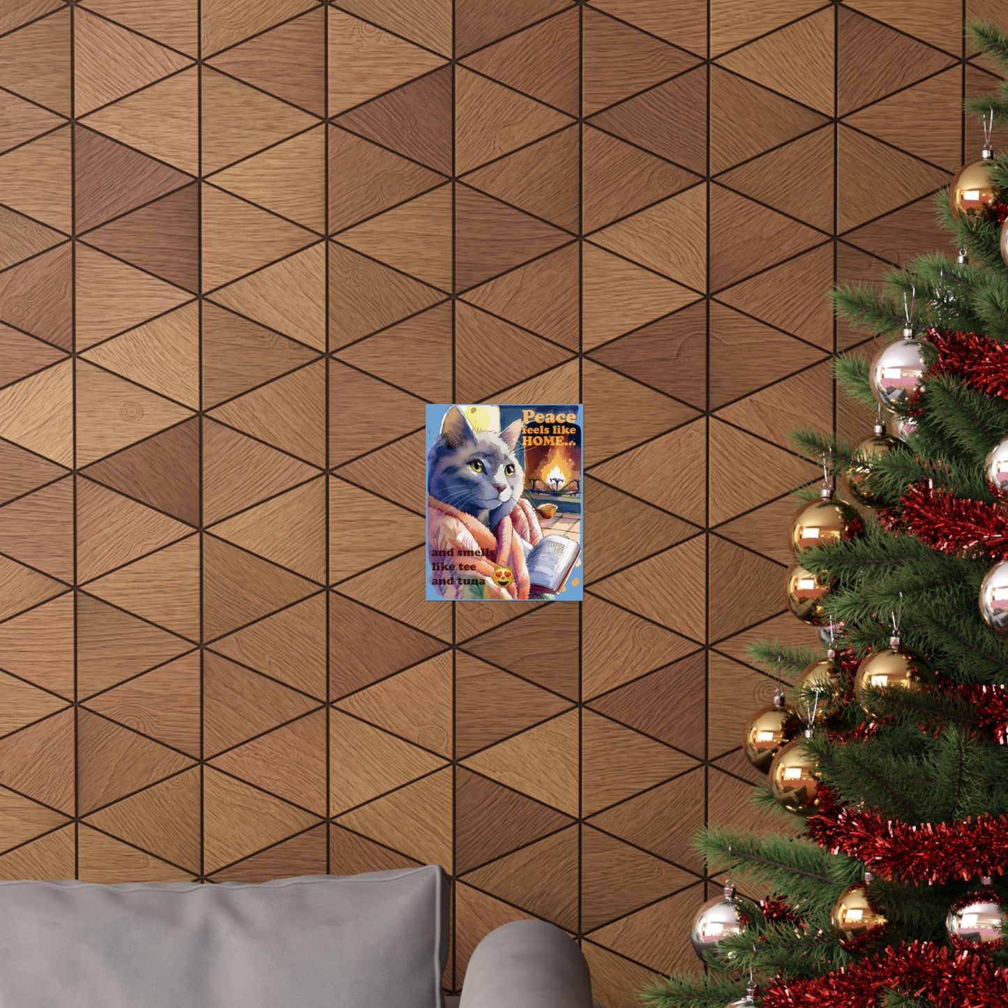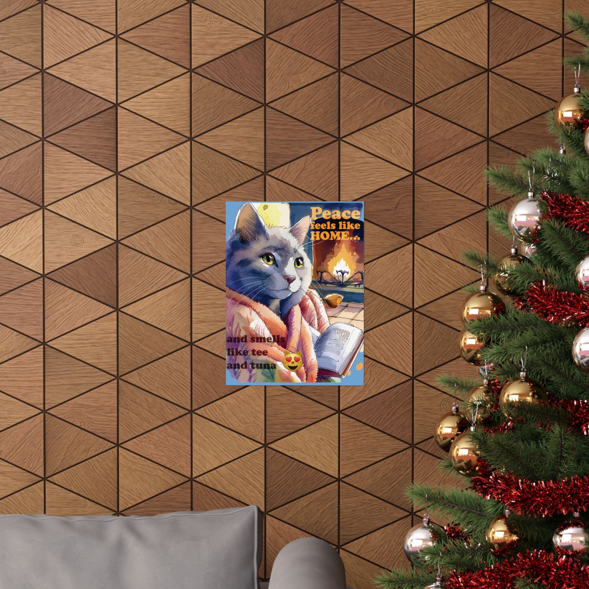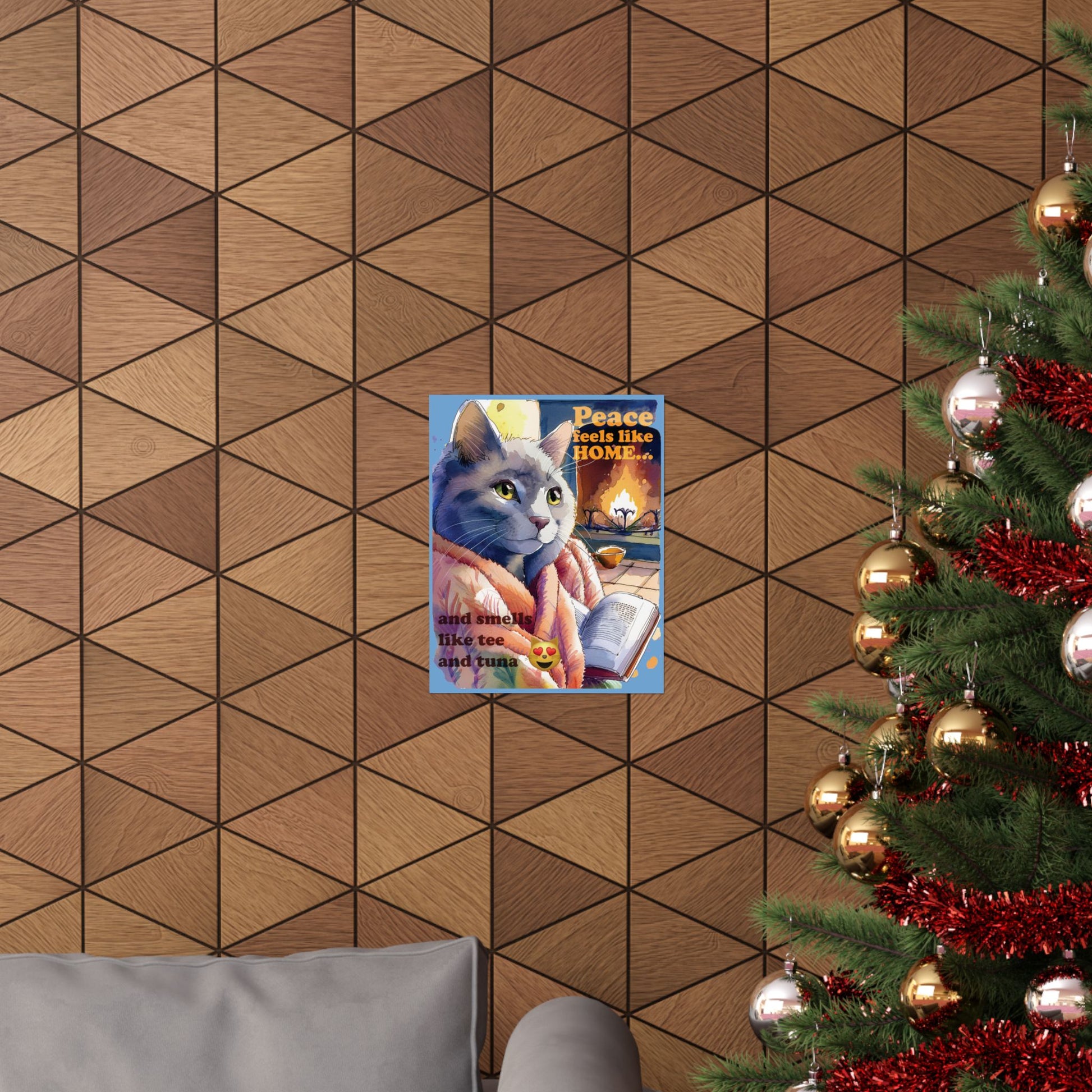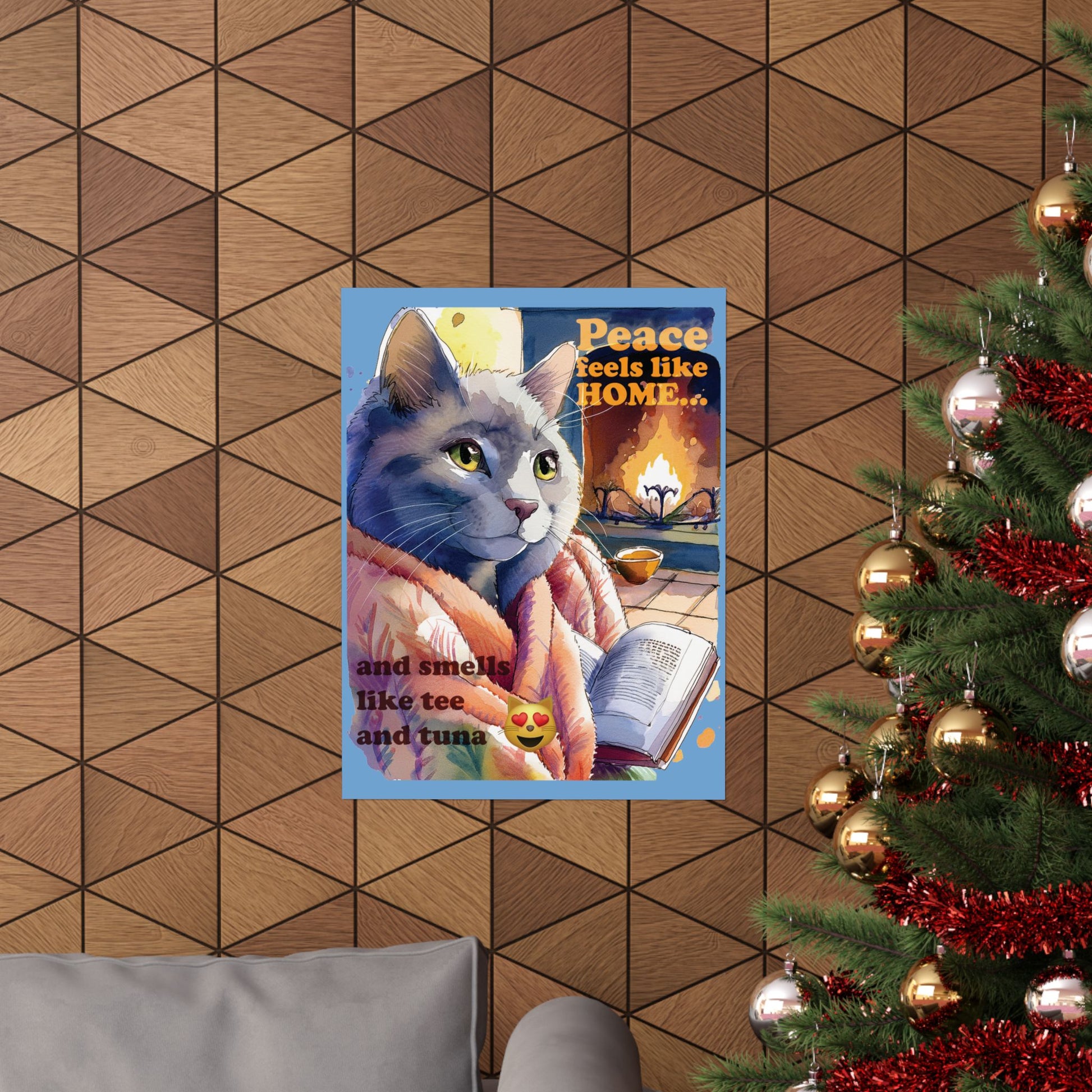 Cozy Cat Wall Art, Peace Feels Like Home Poster, Cat Lover Decor, Living Room Wall Decor, Gift for Cat Owners