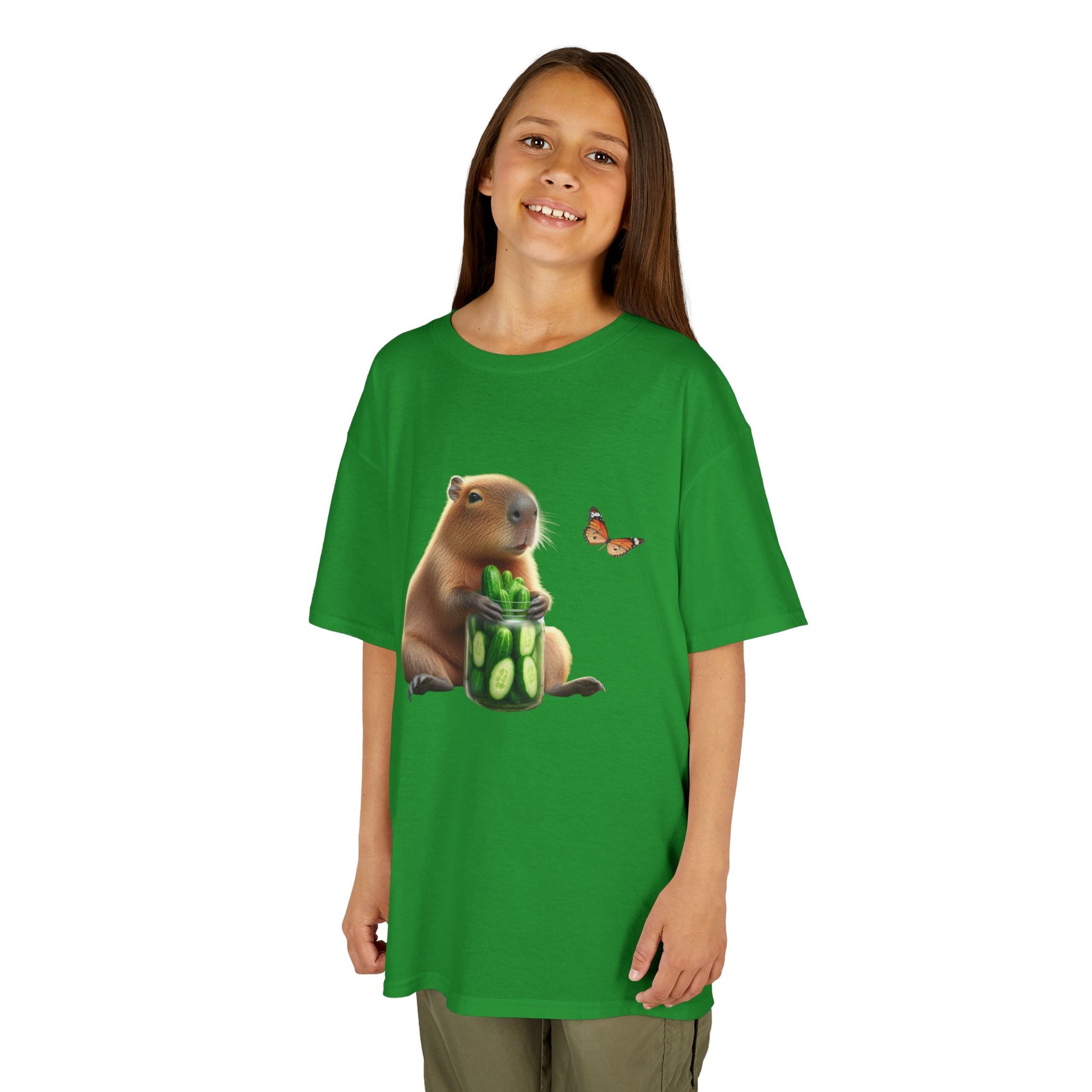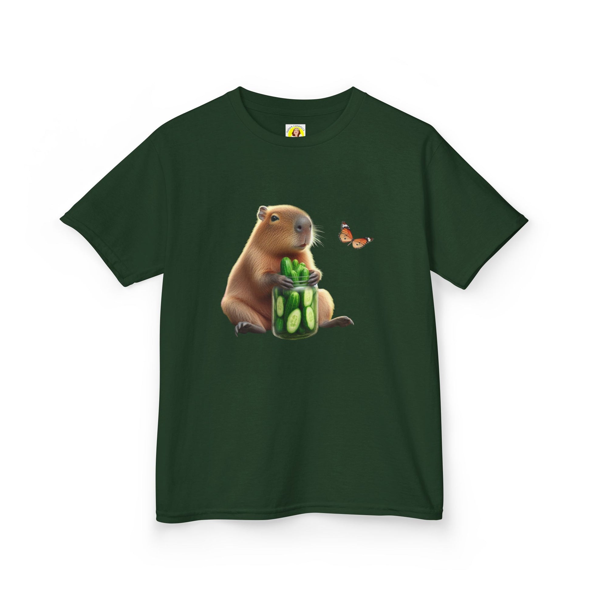 This Kids Tee features a cute Capibara and cucumber jar design that is perfect for young ones who love whimsical and unique prints. Made with soft and sustainable US cotton, this tee offers comfort and style that kids will love. Ideal for everyday wear and can be a great gift for birthdays and holidays.