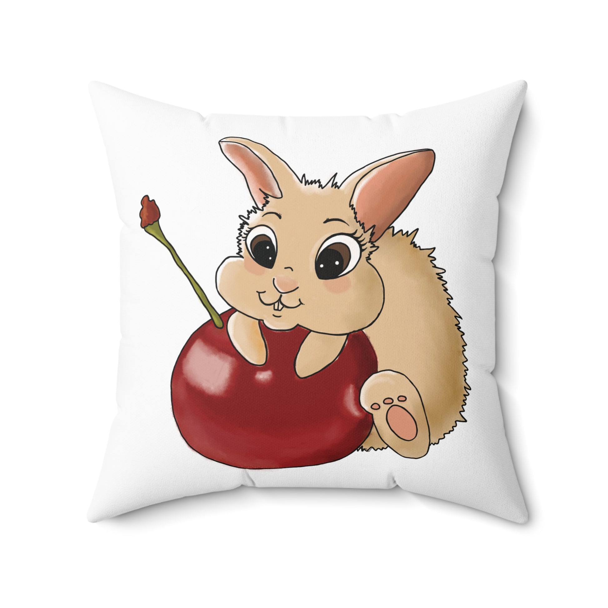 Transform your living space with this charming and whimsical pillow. It features an adorable illustration of a cute bunny snacking on a cherry, adding a playful touch to any room. Perfect for children's playrooms, nurseries, or cozy living rooms, this pillow brings a heartwarming vibe that instantly brightens up your home. It's a delightful addition for animal lovers and anyone looking to add a splash of personality to their decor. This pillow is also fantastic for occasions like birthdays, baby showers, or as a thoughtful gift during the holidays, making it a versatile choice for any celebration.