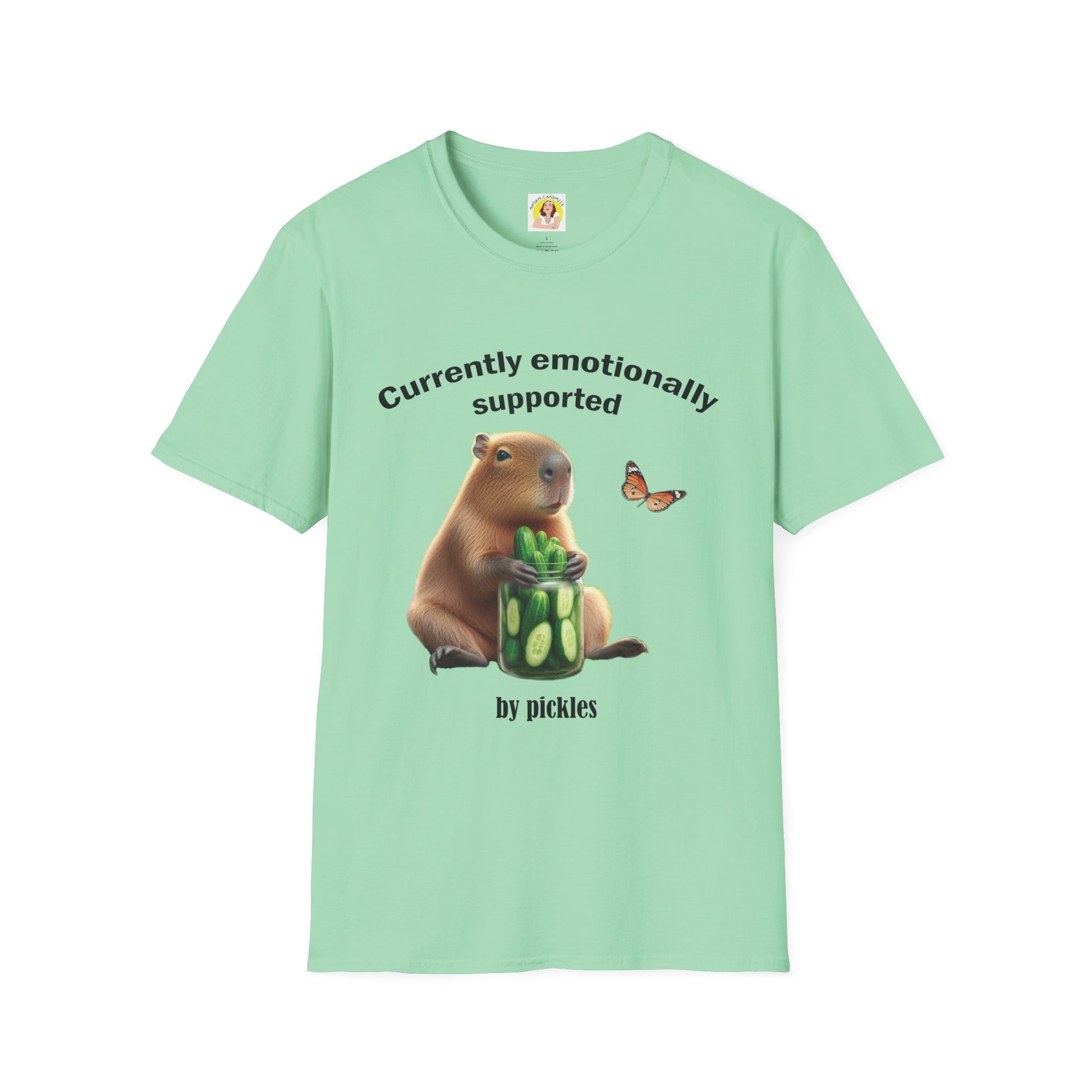 Cute Capybara with cucumber jar and Butterfly Unisex Softstyle T-Shirt