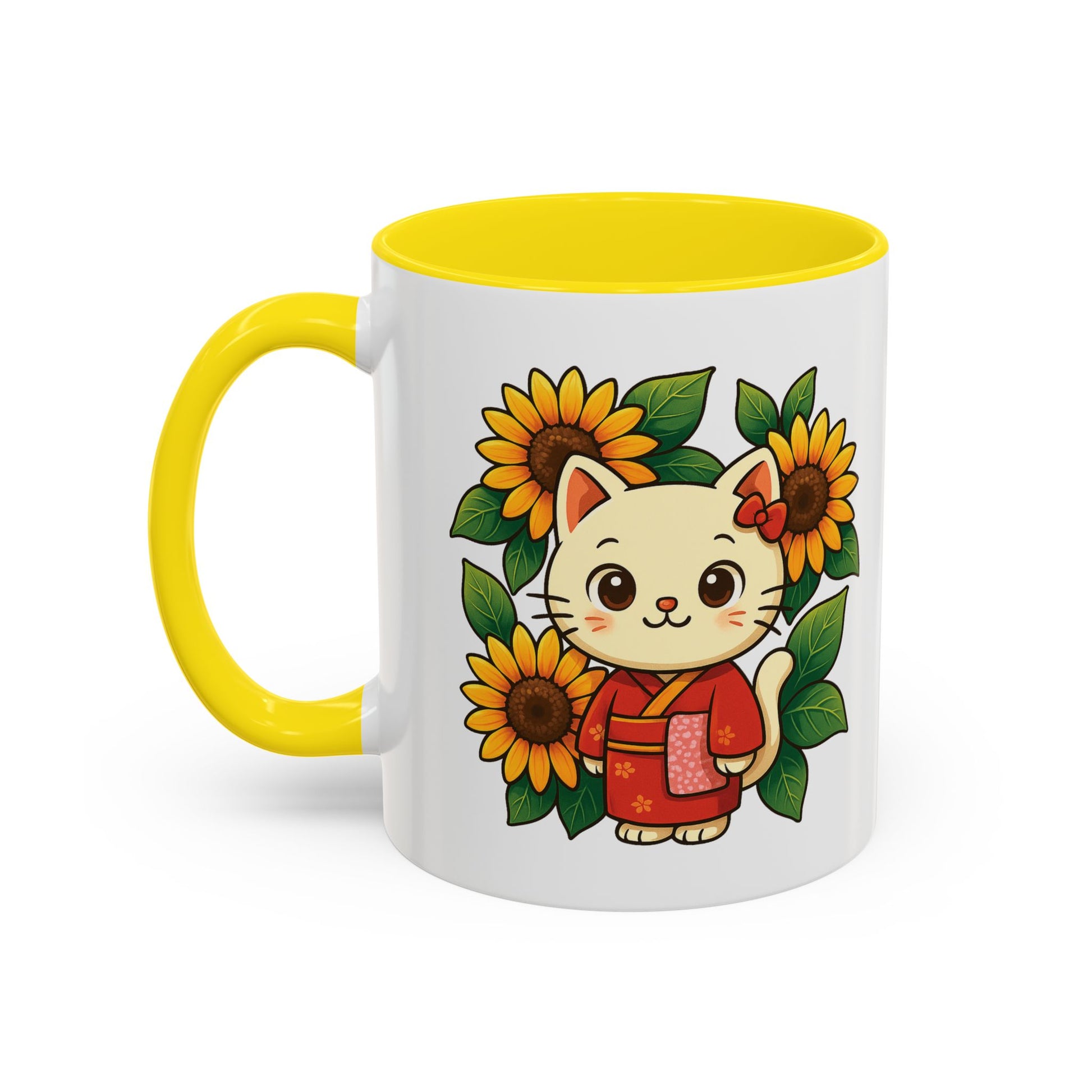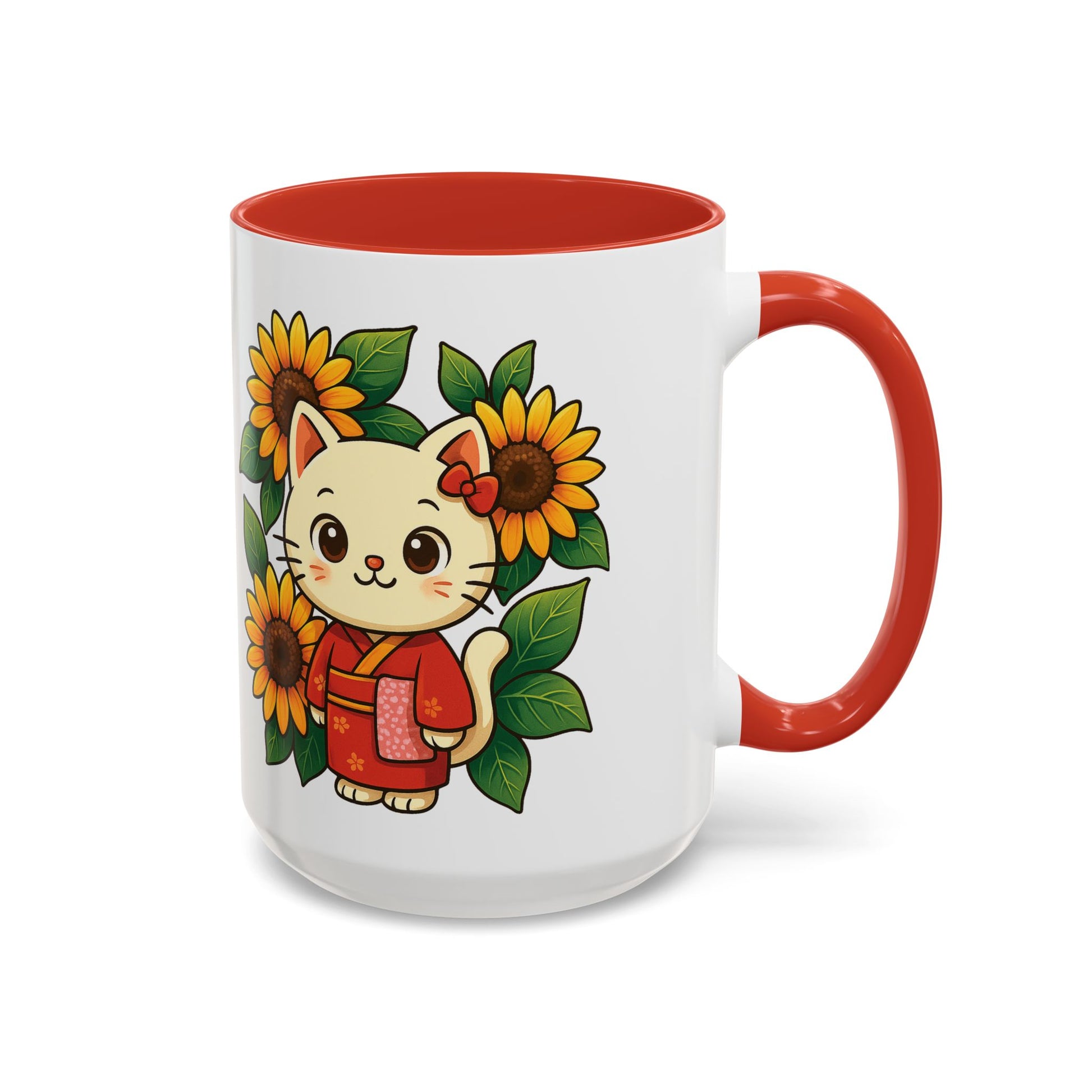 Cute Cat Floral Accent Coffee Mug - Kitty Lover Gift, Tea Cup, Home Decor, Anime Inspired, Coffee Lover Gift