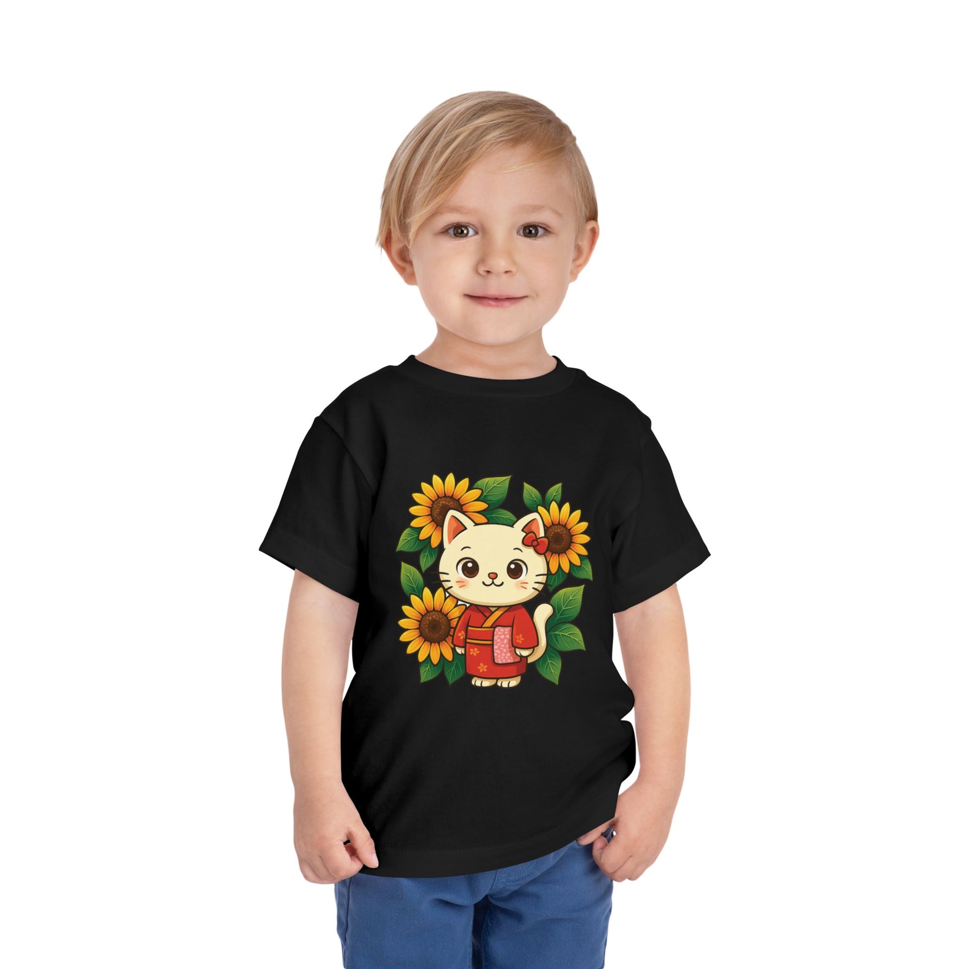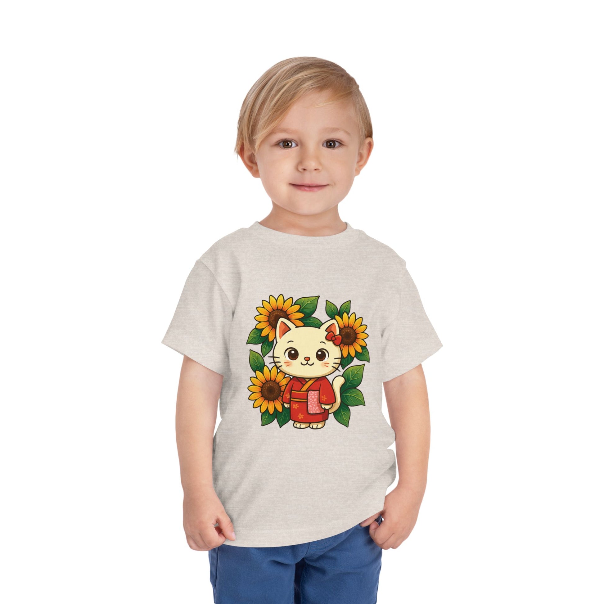 Cute Cat Graphic Toddler Tee, Kids Shirt, Summer Outfit, Gift for Toddlers, Floral Tee, Funny Baby Clothes