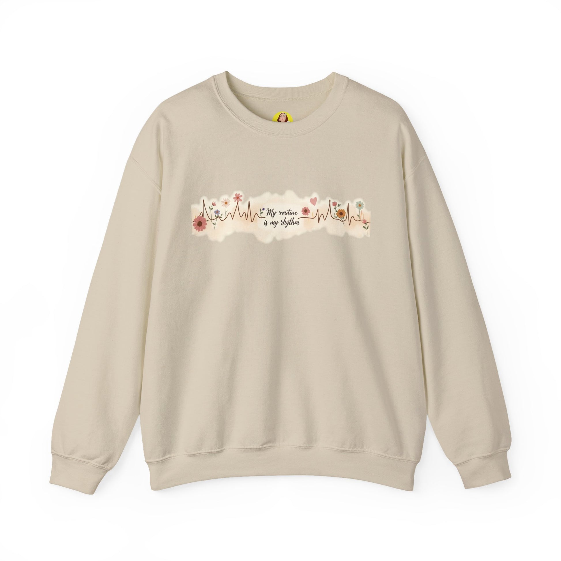 Floral Heartbeat Crewneck Sweatshirt - Cozy Gift for Music Lovers, Unisex Sweatshirt for Birthdays, Valentine's Day, Self-Care