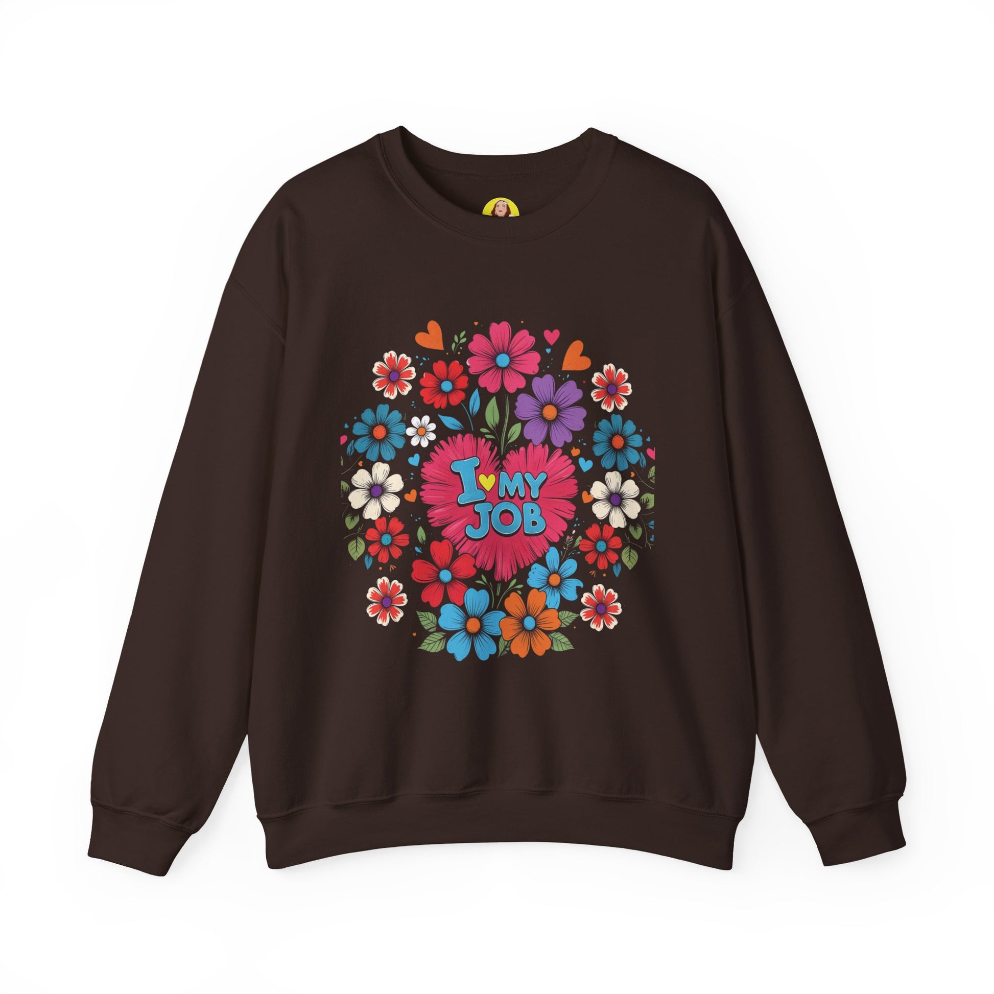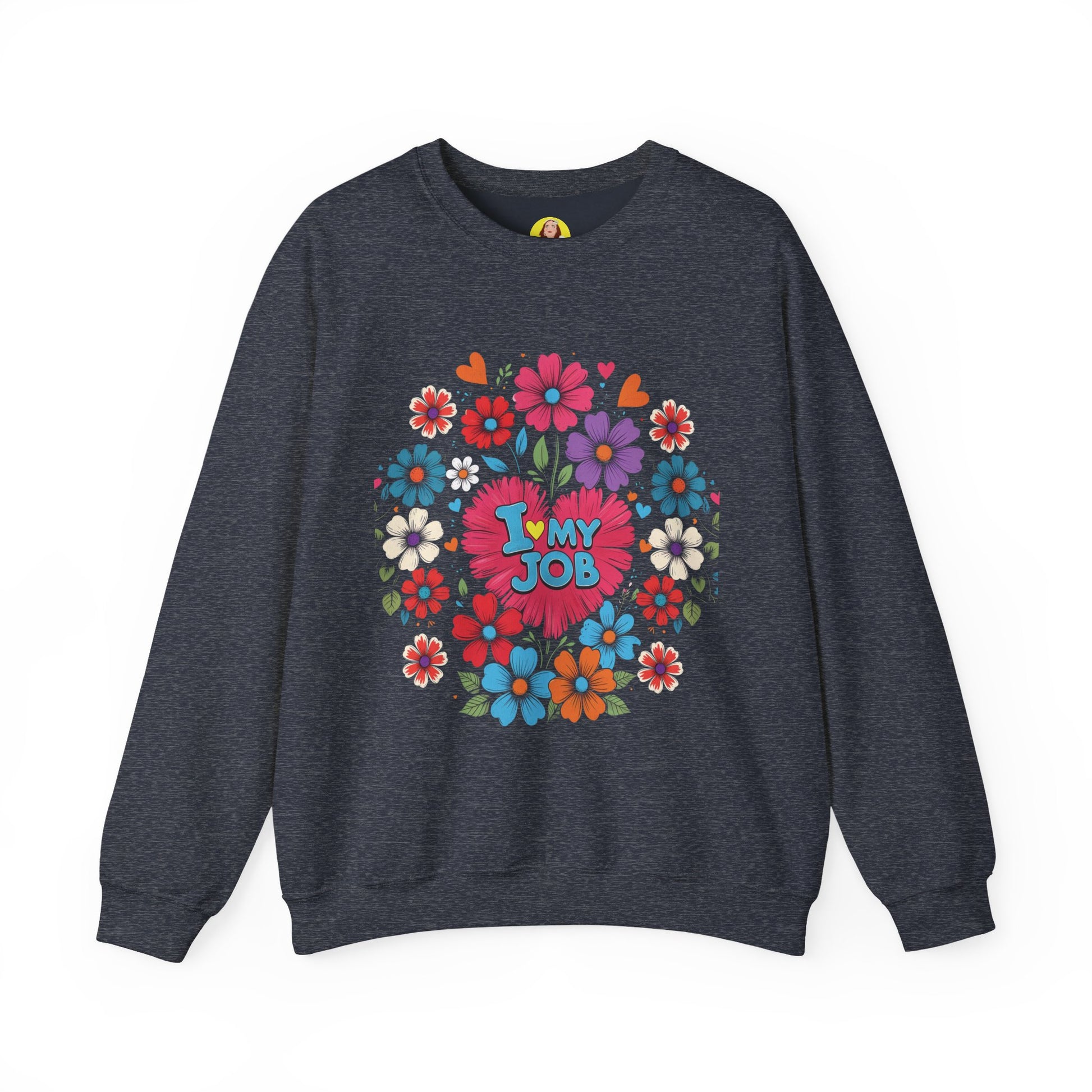 Floral 'I Love My Job' Crewneck Sweatshirt for Work, Motivational Gift, Happy Casual Wear, Spring Style, Unique Employee Appreciation
