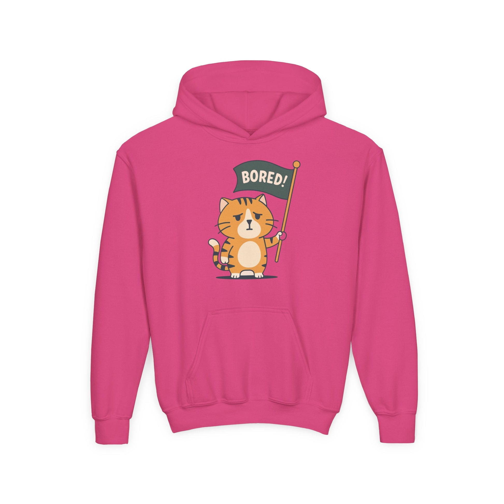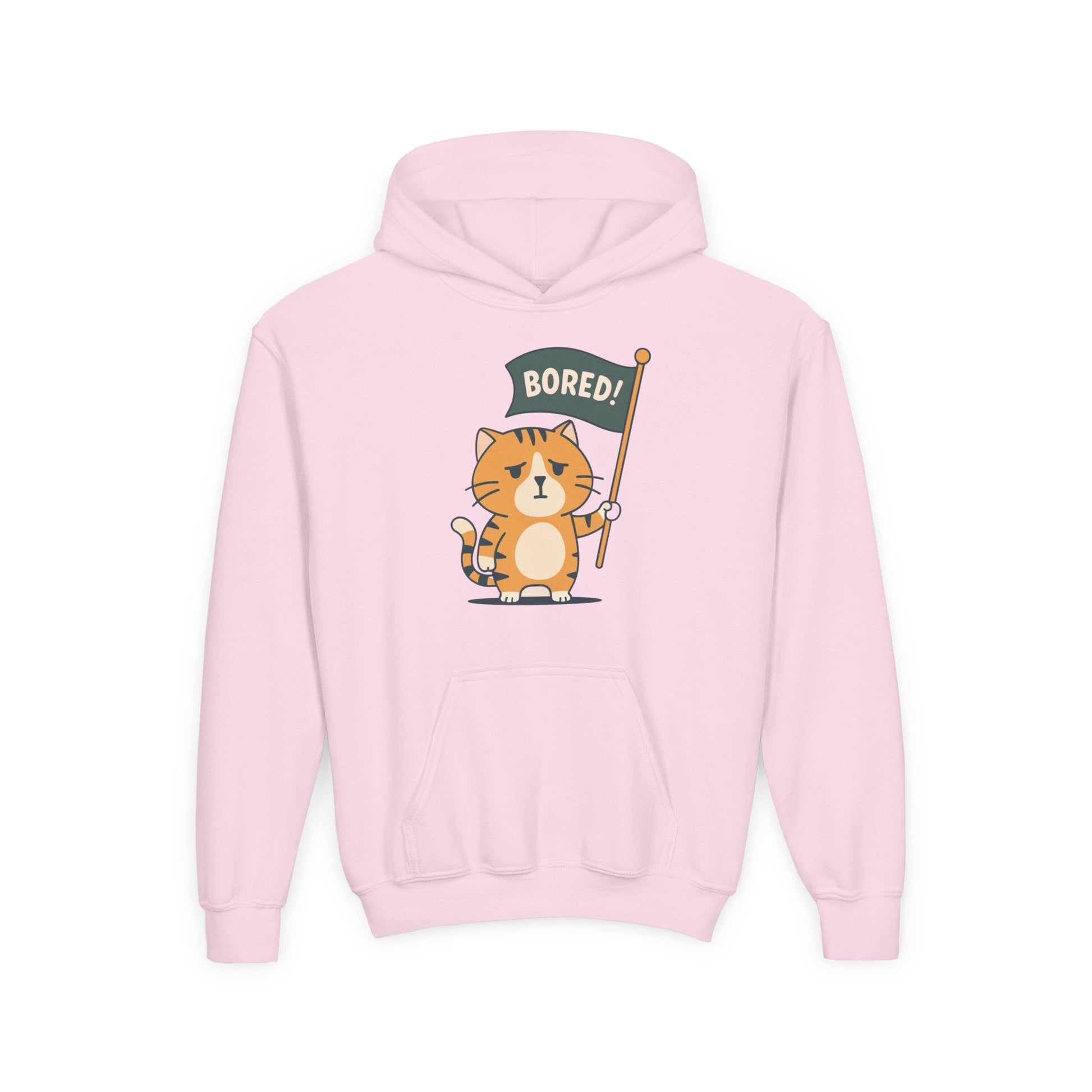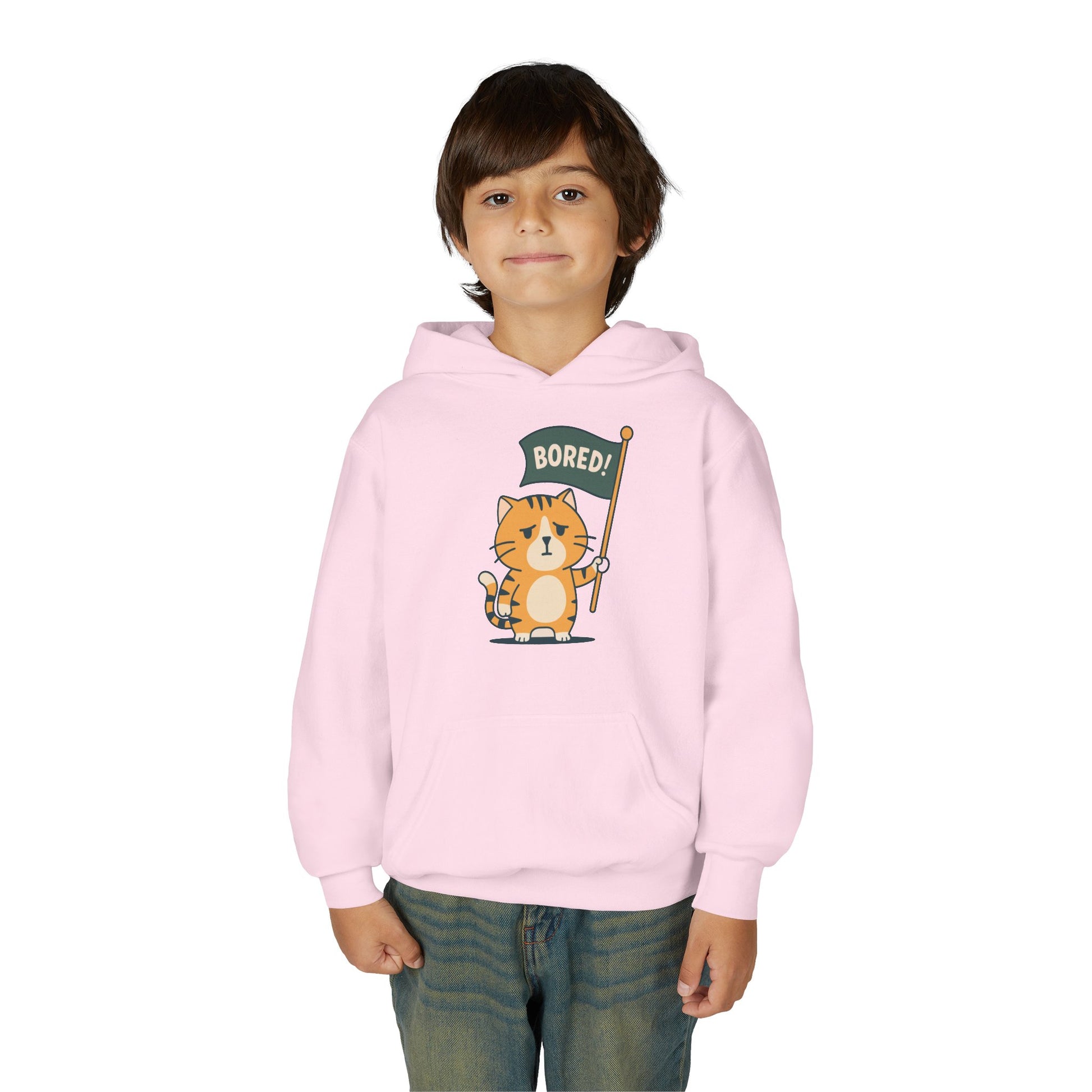 Funny Cat Bored Youth Hoodie, Cute Cat Sweatshirt, Kids Gift, Animal Lover Apparel, Fun Hoodie for Children, Everyday Wear