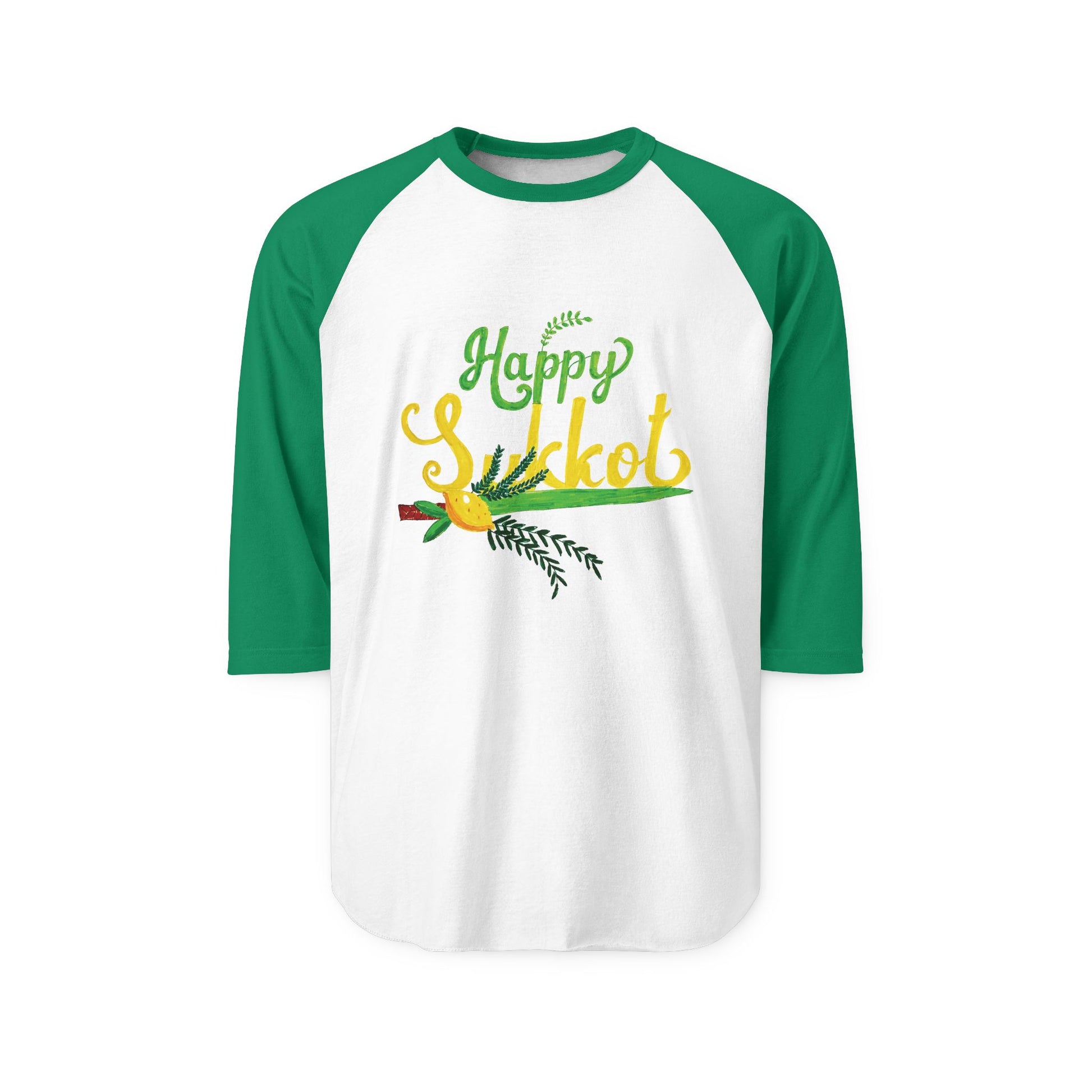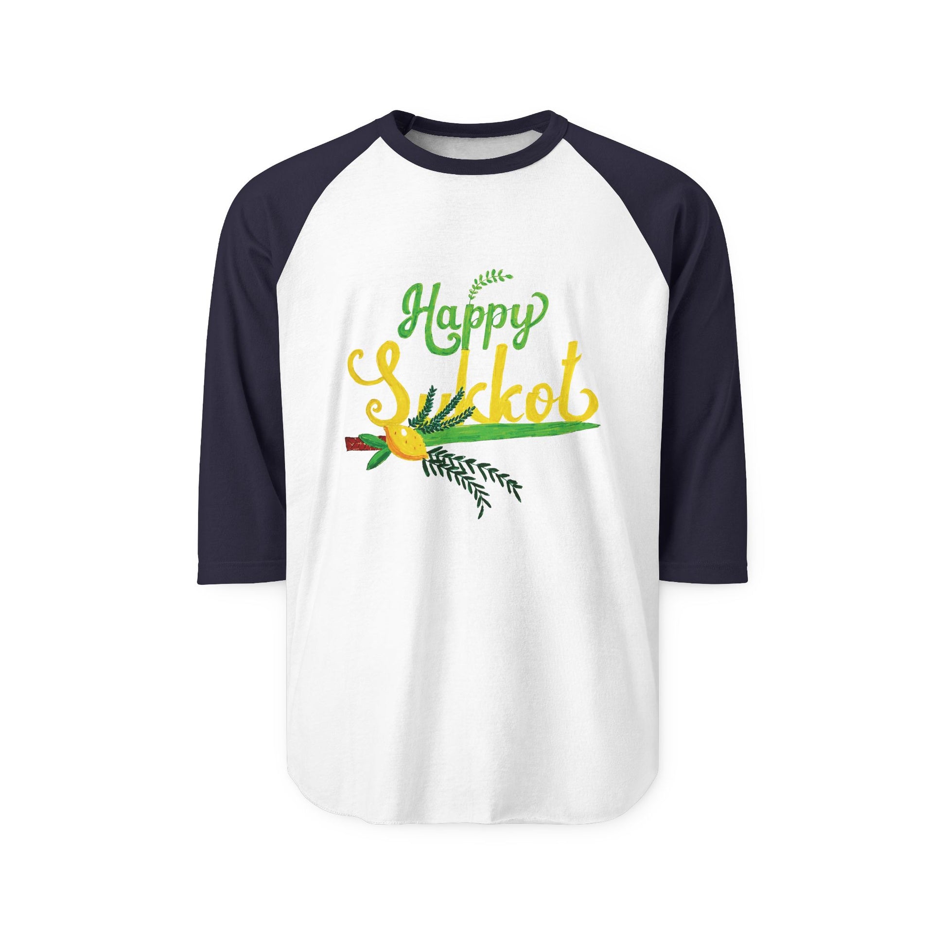 Happy Sukkot Raglan Shirt, Unisex Festive Tee, Fall Celebration Shirt, Jewish Holiday Apparel, Unique Gift for Sukkot