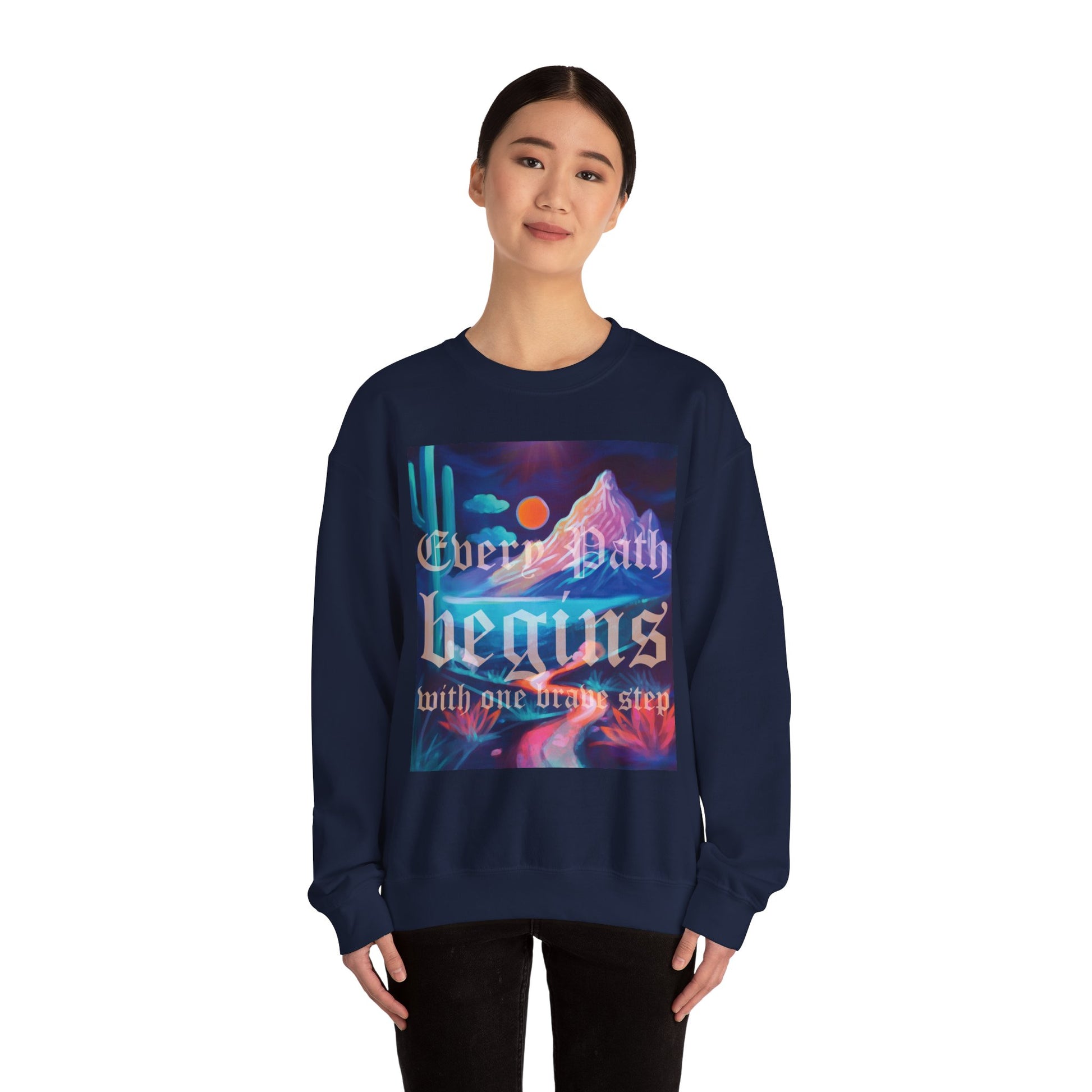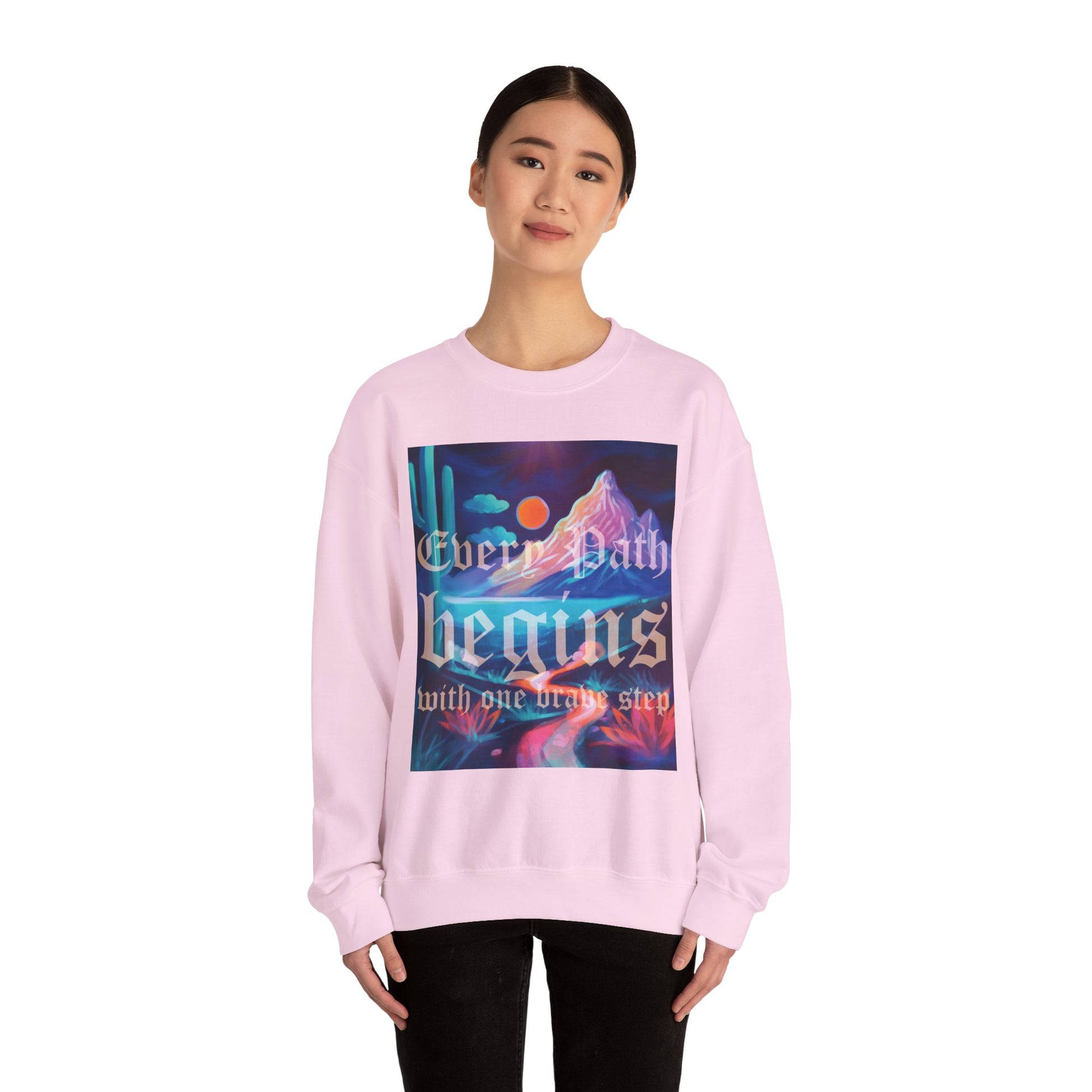 This Unisex Heavy Blend™ Crewneck Sweatshirt combines comfort with style, making it a must-have for cozy days. The vibrant design on the front inspires adventure, resonating with those who embrace life with passion. Perfect for a relaxed weekend or a casual outing, it adds warmth and flair to your wardrobe. Ideal for anyone who loves unique apparel, especially during fall and winter gatherings, it's a great gift for birthdays, holidays, or as a thoughtful present for a loved one embarking on a new journey. This sweatshirt is not just clothing; it's a reminder that every path shines with opportunity.