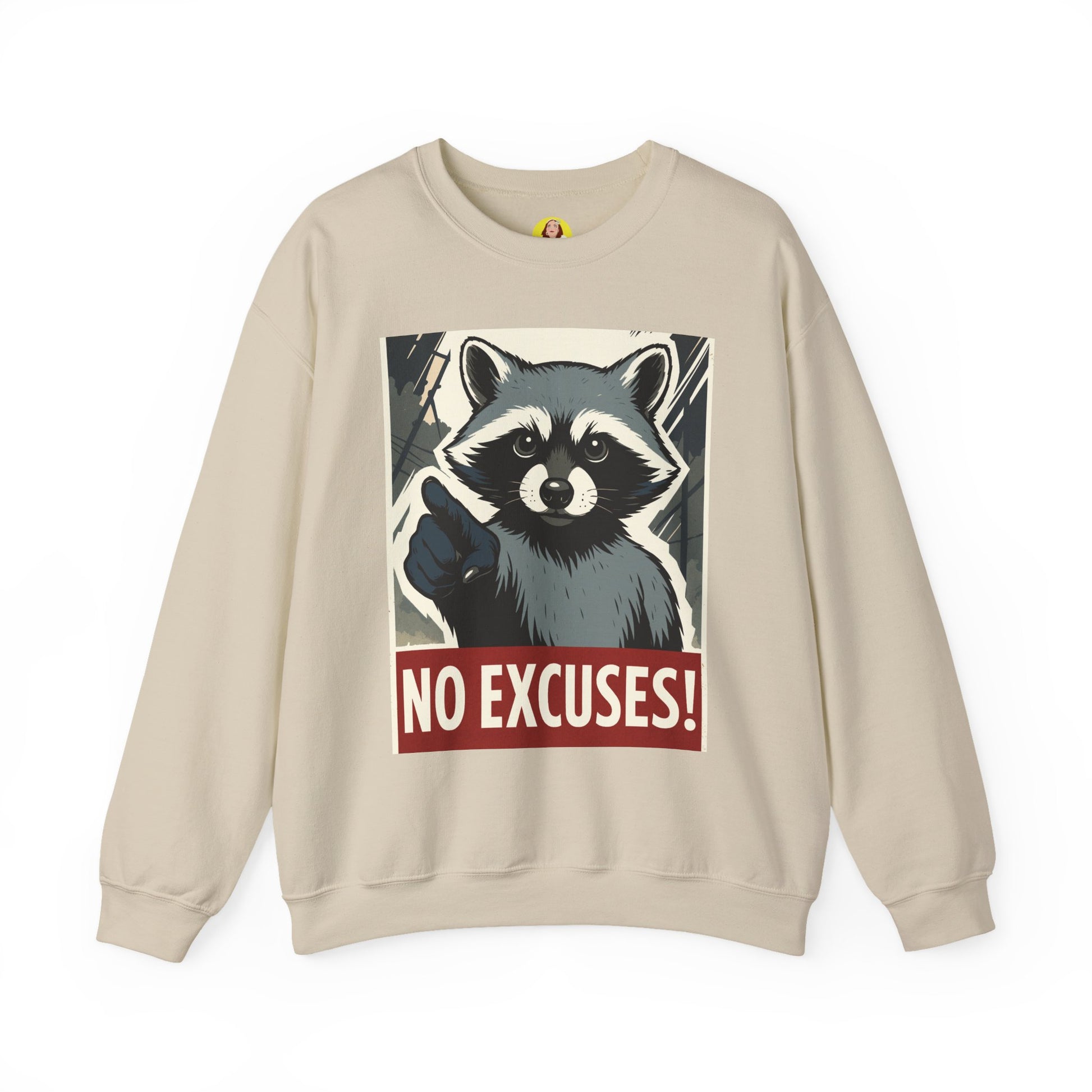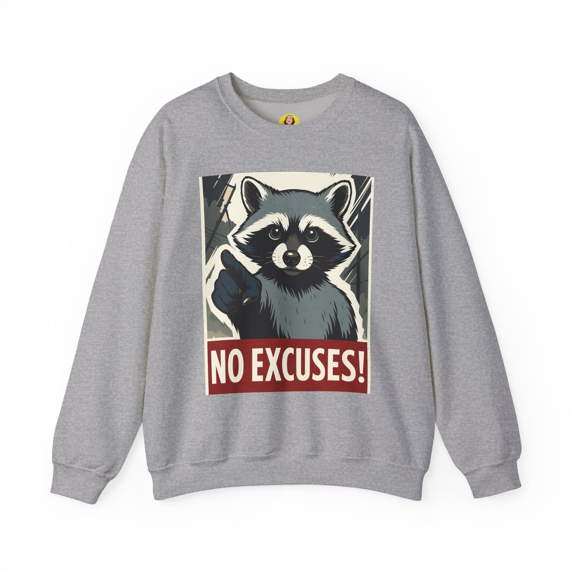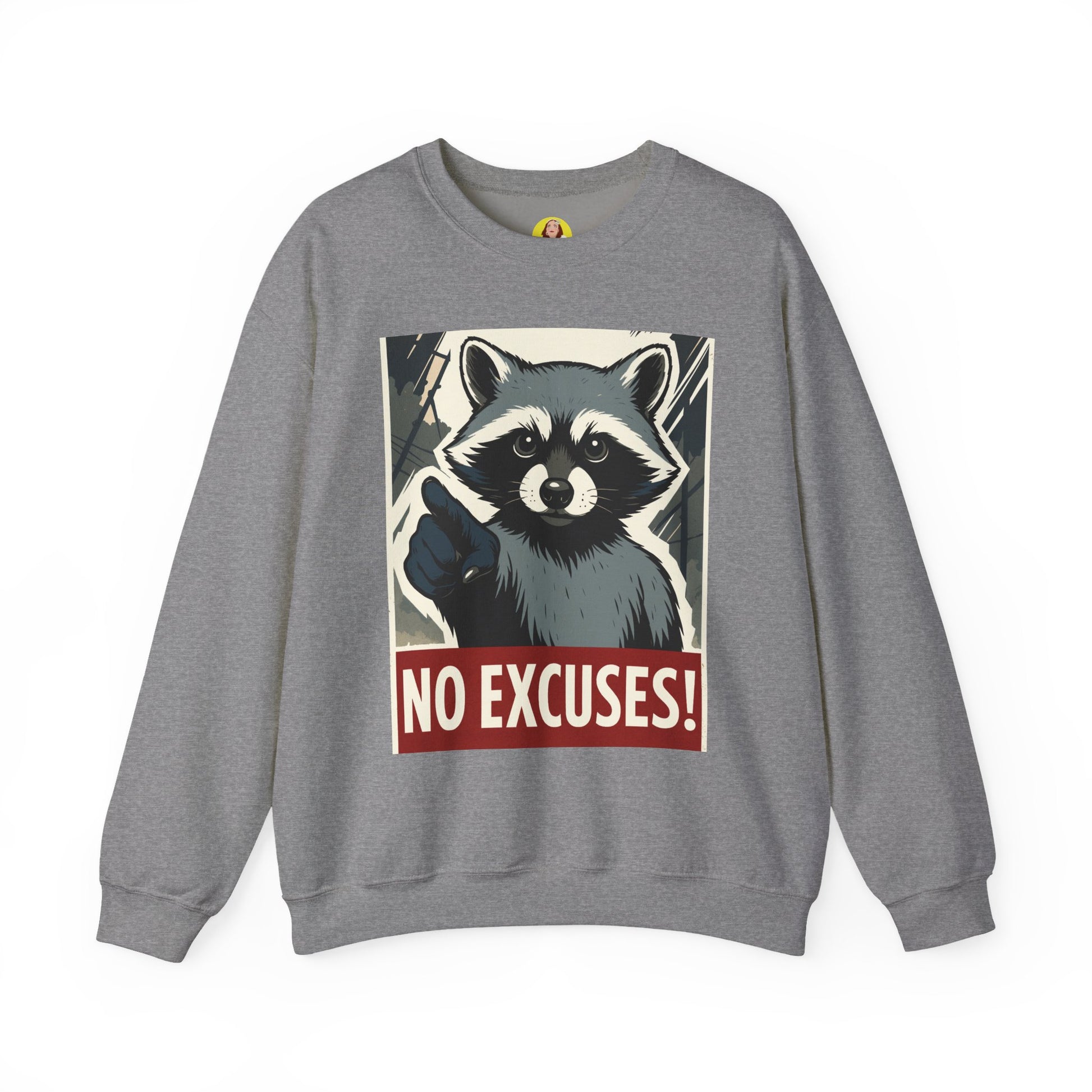 No Excuses! Raccoon Crewneck Sweatshirt, Cozy Sweatshirt for Animal Lovers, Gift for Motivation, Funny Sweatshirt, Unisex Fashion