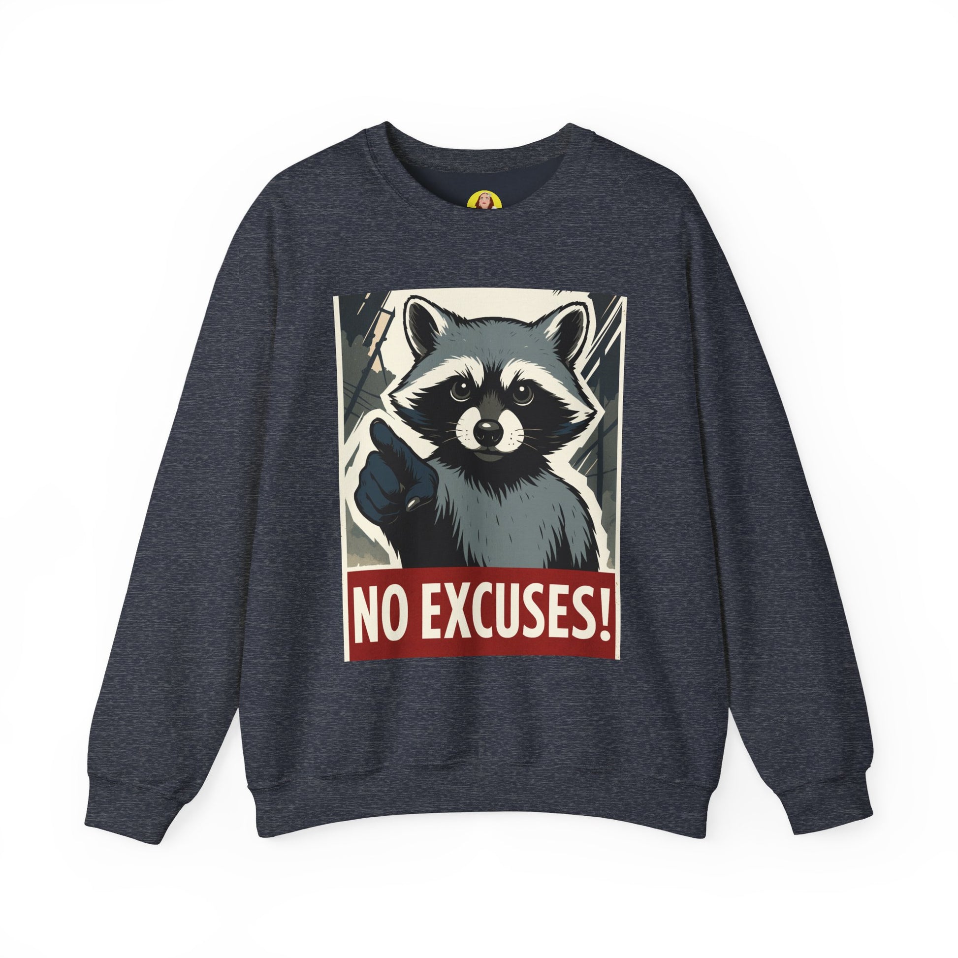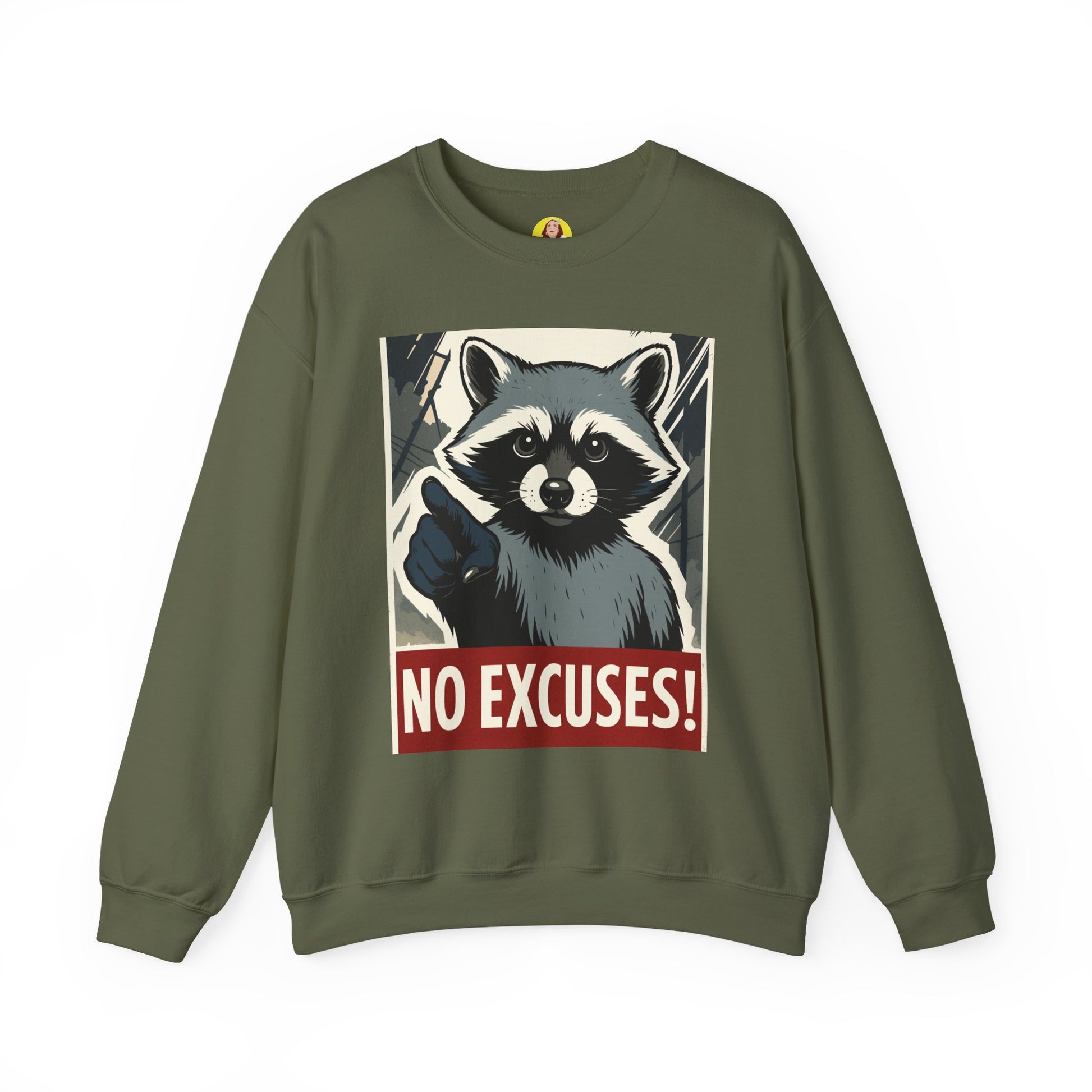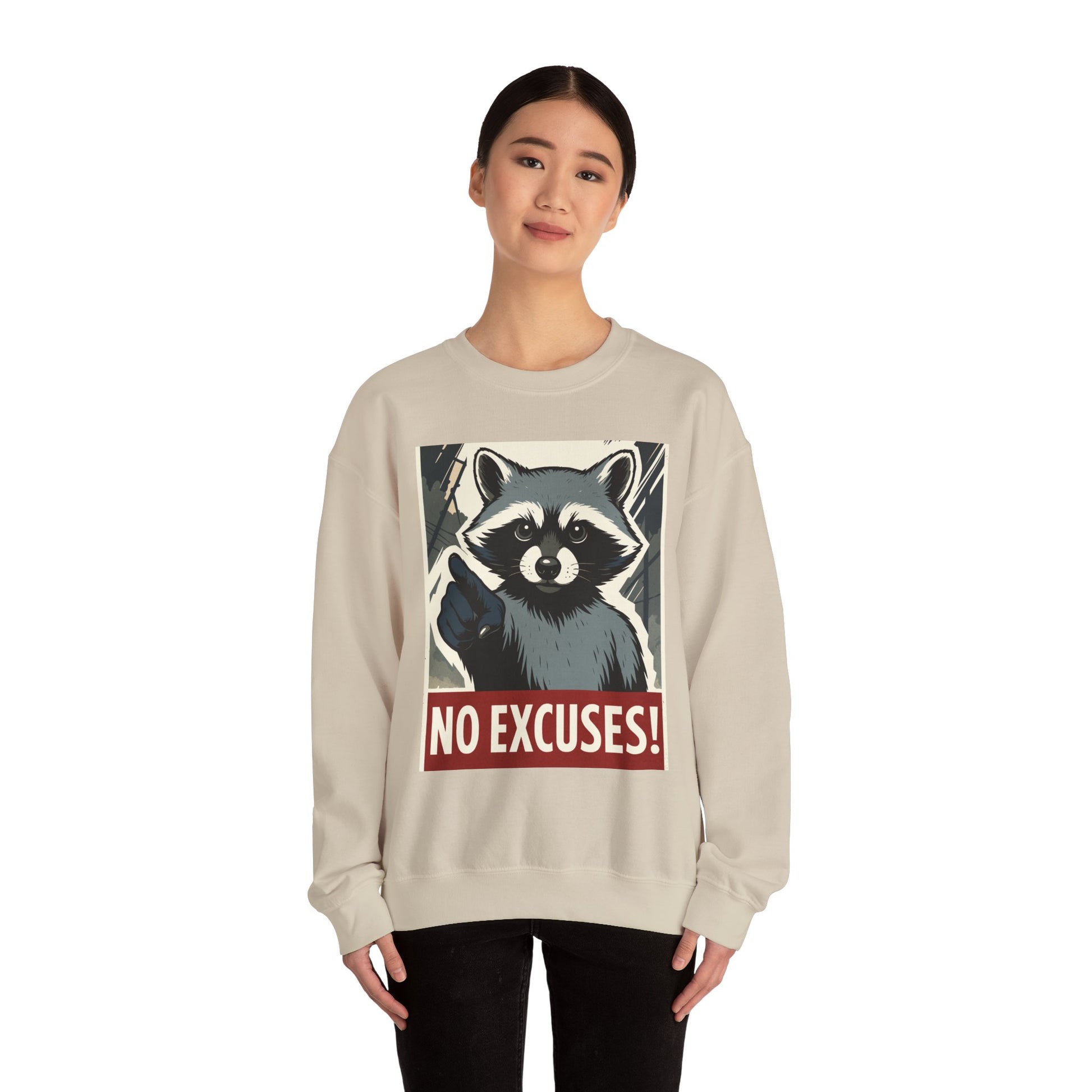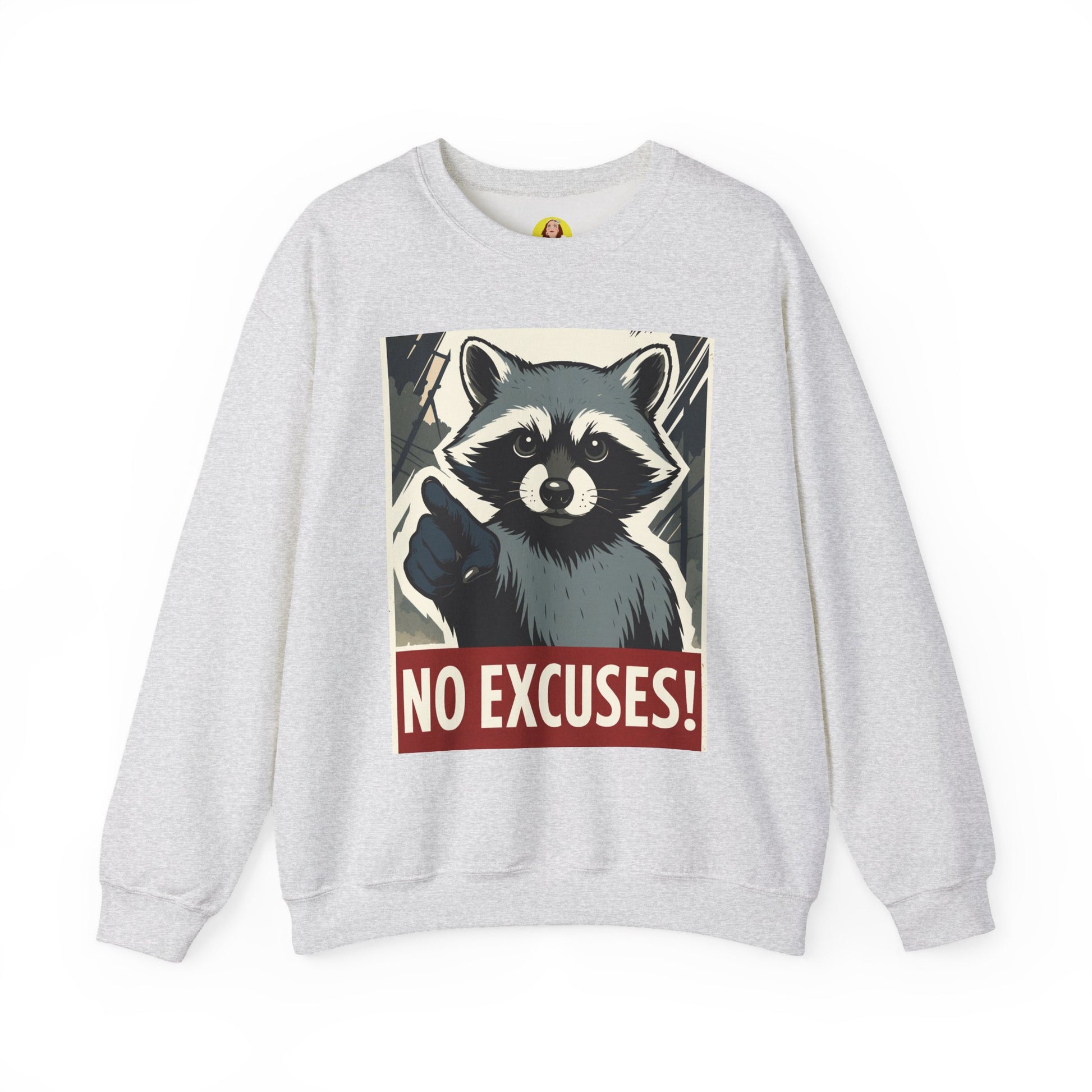 No Excuses! Raccoon Crewneck Sweatshirt, Cozy Sweatshirt for Animal Lovers, Gift for Motivation, Funny Sweatshirt, Unisex Fashion