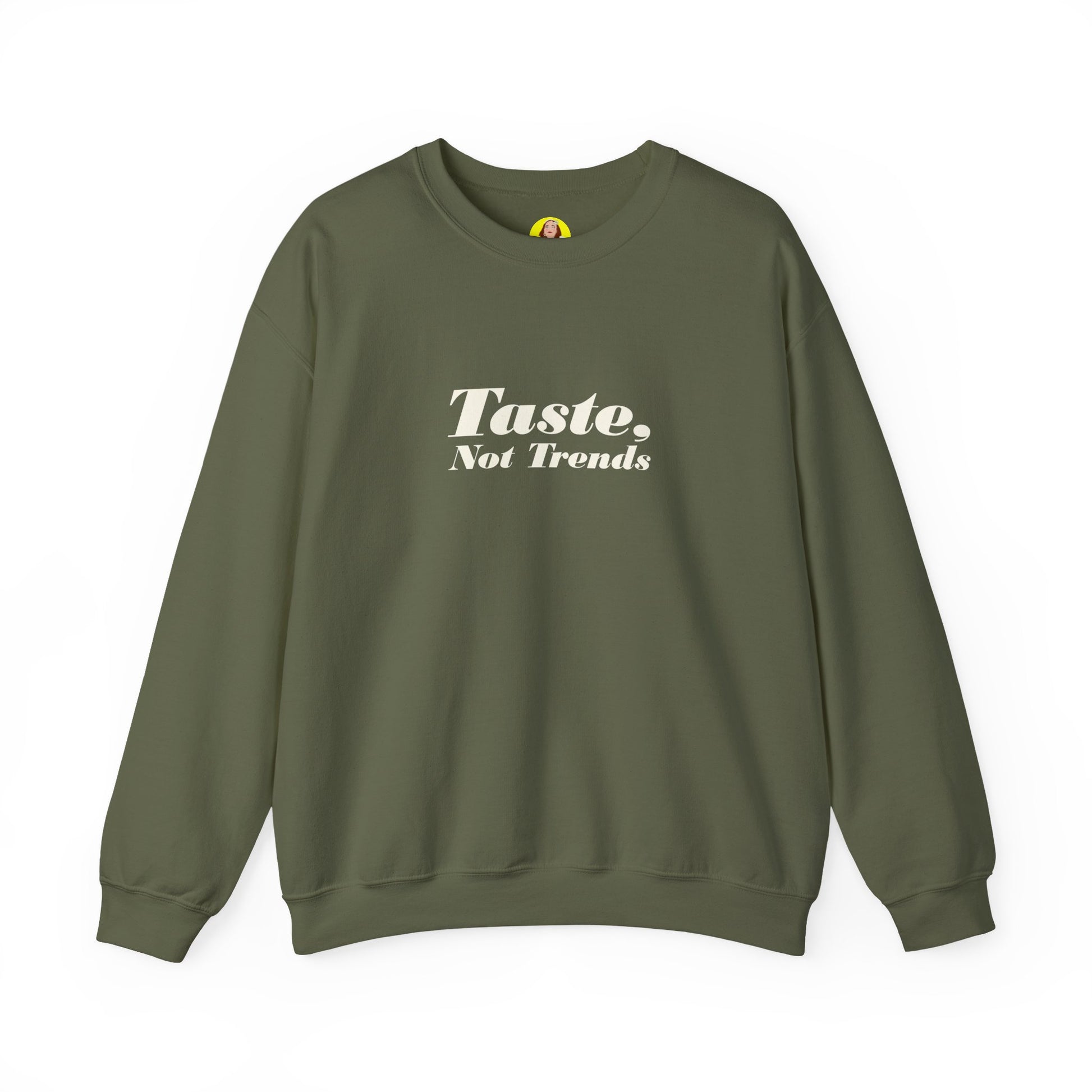 Taste Not Trends Crewneck Sweatshirt, Cozy Fashion Sweater, Unisex Casual Wear, Gift for Trendsetters, Comfortable Loungewear