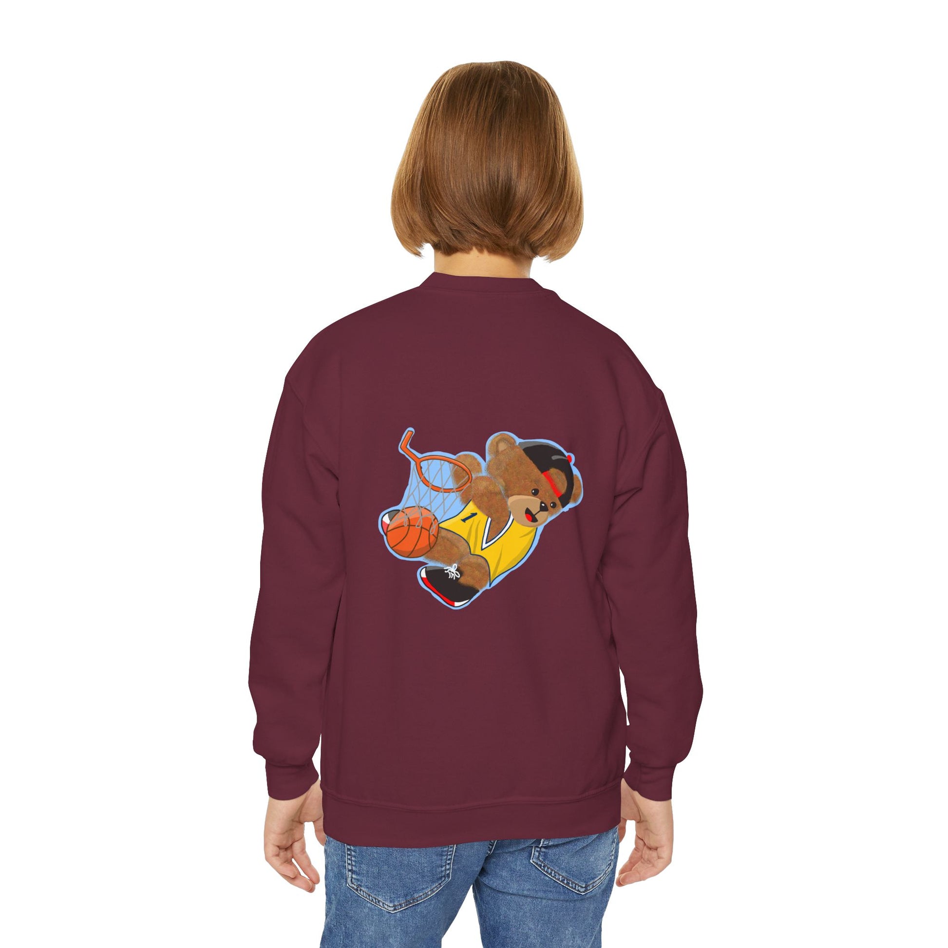 Youth Basketball Bear Sweatshirt - Cozy, Fun Gift for Kids, Perfect for Birthdays, Sports Events, or Casual Wear, Kids Crewneck